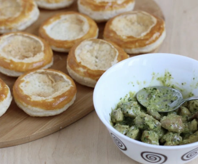 The recipe for puff pastry tartlets with meat filling will come in handy when you think about what snacks to cook for the festive table. Chicken pesto tartlets are a great option.