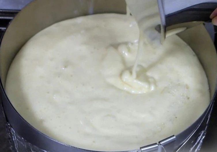 Pour it into the dough, mix everything gently again.