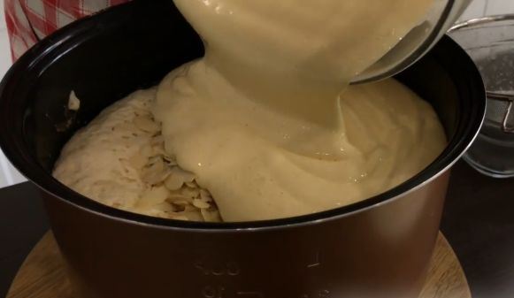 Add the almond flakes, leaving some for decoration.
