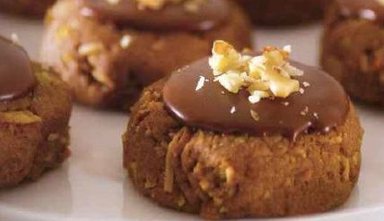 Put the icing on the cooled biscuits and sprinkle chopped nuts over the chocolate biscuits.