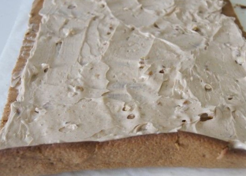 Turn the finished biscuit on a clean towel, remove the parchment from it and wrap it in a roll with a towel. Cool completely.
