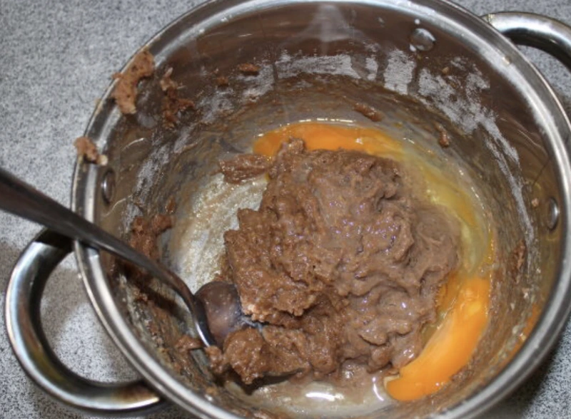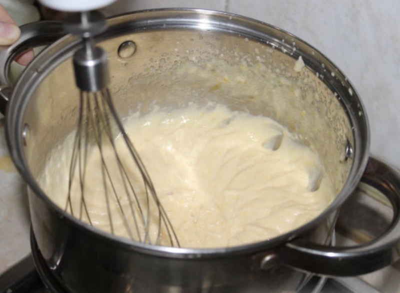 - Break 3 eggs into a saucepan, add sugar, and put the saucepan in a water bath.