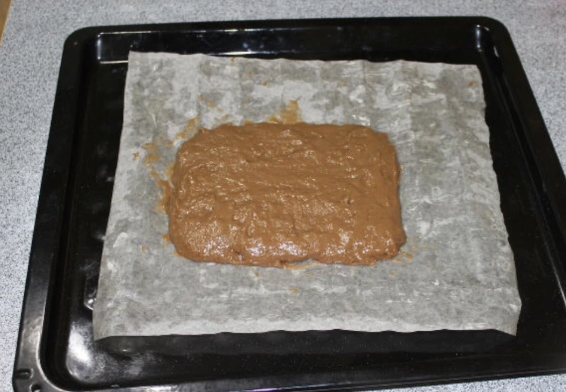 - Place the dough carefully on oiled baking paper. (Chocolate sponge cake can be baked in a muffin tin.)