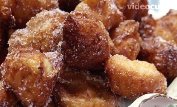 Deep-fry the donuts over medium heat until golden brown. Spoons need to be changed from time to time, as dough sticks to them.