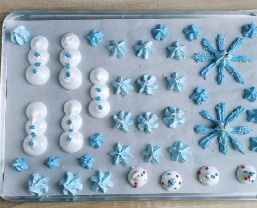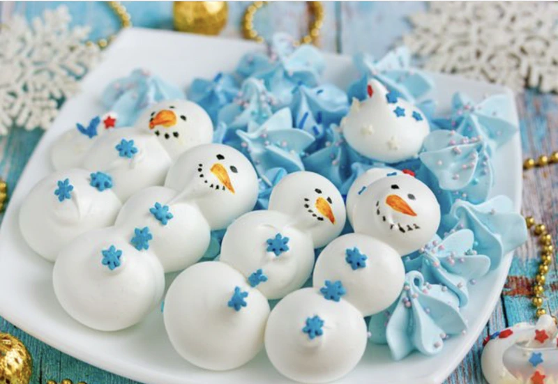 Bright colorful meringue is a cherished sweetness for children! You can easily make meringues at home, in the form of snowmen, snowflakes, and other symbolic figures. From this meringue, you can assemble edible gift sets for babies. Also, the New Year’s meringue will become a wonderful decor for festive baking and original decoration for the Christmas tree!