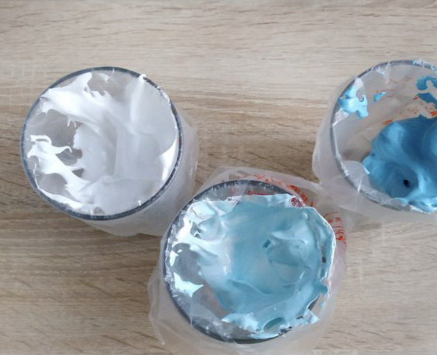 Divide the protein mass into three parts – leave one part white, tint the second with a small amount of blue or cyan gel dye, and paint the third a little more to get a deeper blue.