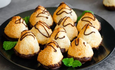 Cookies made from coconut and egg whites are crispy and very flavorful. Coconut cookies with chocolate look very neat and solemn!