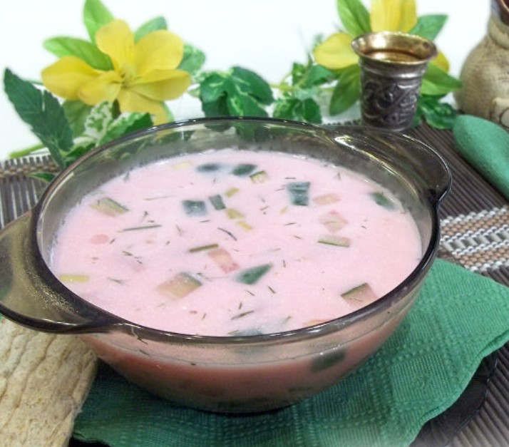 In the classic beetroot recipe, the dish is dressed with beet broth with the addition of kvass, kefir or sour cream. Today I am sharing with you a recipe for cold beetroot, which I cooked not only with beet broth, but also with meat broth, and filled with kefir.