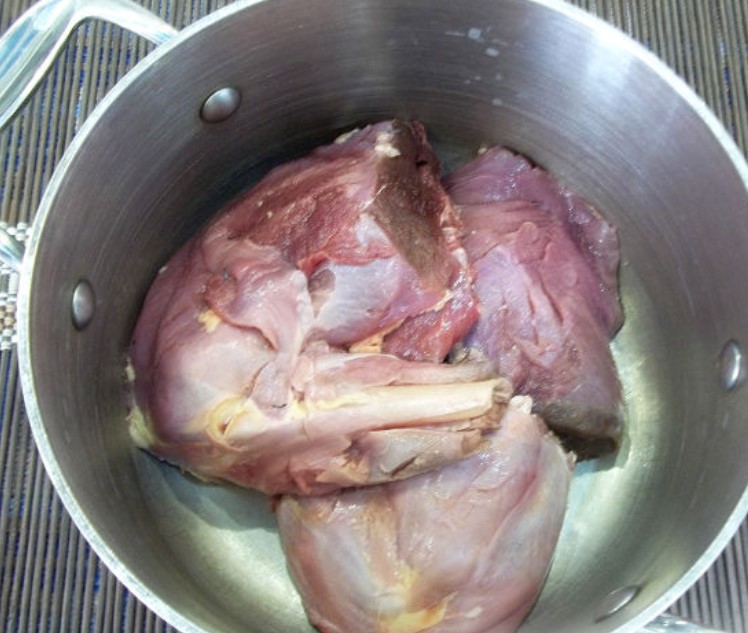 First of all, boil the necessary products. So, wash the meat, fill it with water, salt, put it on the stove and cook the meat broth.