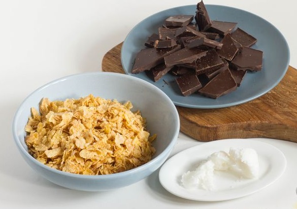 Original sweets made from cornflakes and chocolate! Crunchy and chocolatey! Light, quick to prepare, and very interesting in taste, they resemble waffle crumbs.