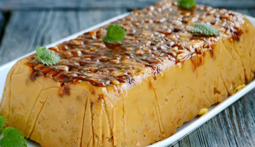 This cake is made from cornflakes and peanuts combined with sour cream caramel cream. Delicate creamy texture tastes like caramel ice cream.