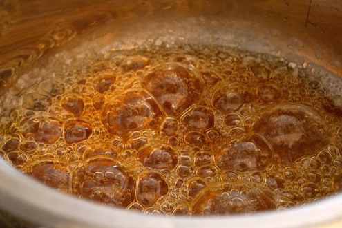 Reduce heat and simmer the caramel for about 7-8 minutes, periodically removing the saucepan from the stove and rotating it from side to side.