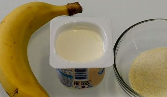 We prepare baby curd, semolina, and banana.