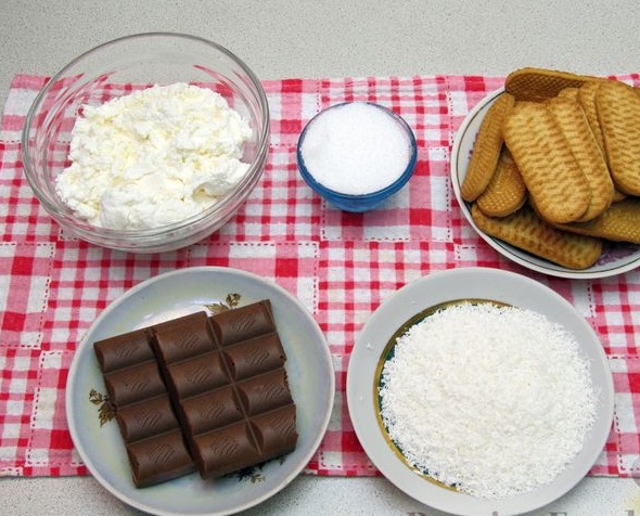 From cottage cheese, cookies, chocolate, and coconut, you can make such cute sweets. Curd sweets with cookies are tender and tasty, and they are prepared very quickly and without using a stove!