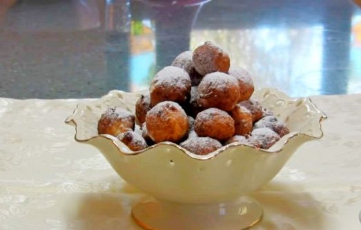 - We put the curd donuts on a dish, sprinkle with powdered sugar, and serve.
