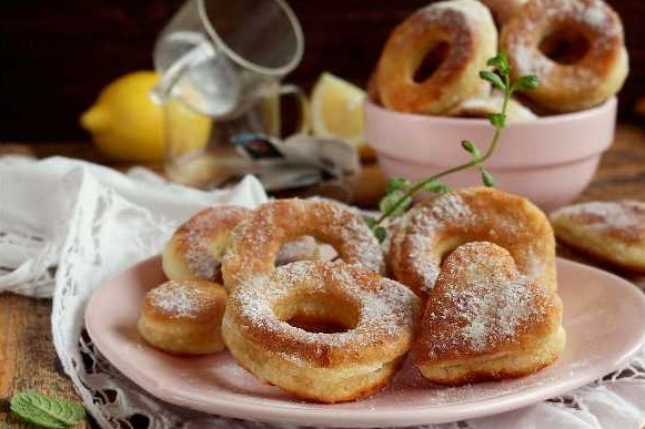 Cut out rings with a diameter of 8 cm from the dough. If you wish, you can cut out figures in the shape of a heart, etc., for Valentine’s Day.