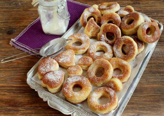 We keep the finished fried curd donuts on paper for a couple of minutes, which will absorb excess oil. Then sprinkle with icing sugar.