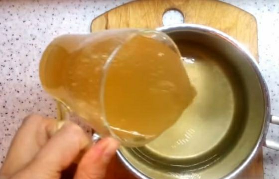 Pour 50 g of gelatin with one glass of grape juice and let it swell. Bring another glass of juice to a boil. Then remove the swollen gelatin from the stove and dissolve it.