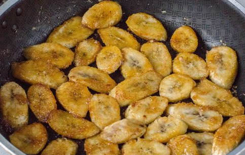 Put the bananas in one layer in a pan and fry for 2-3 minutes on each side, until a golden-brown crust is formed.