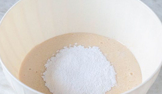 Pour the fermented baked milk into a separate bowl, pour the powdered sugar and vanillin.