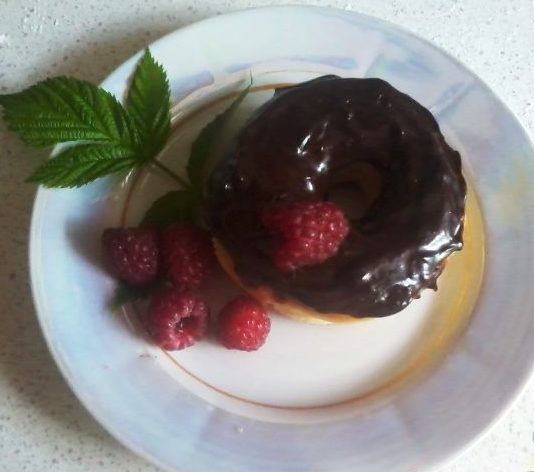 For the chocolate glaze, mix together the butter, condensed milk, and cocoa. Warm-up over low heat, stirring constantly, until boiling.