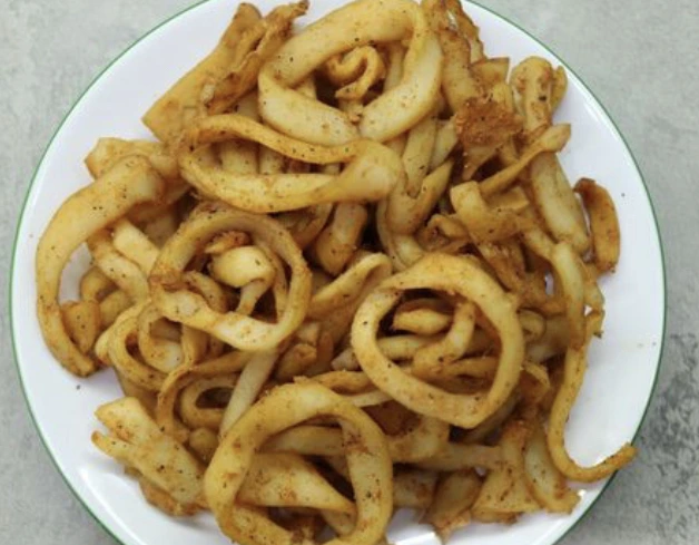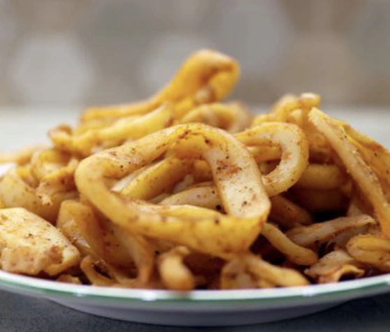 Mix “taste” (spices) in a plate and send to the chopped squid. Mix everything well. You can use any spices you like.