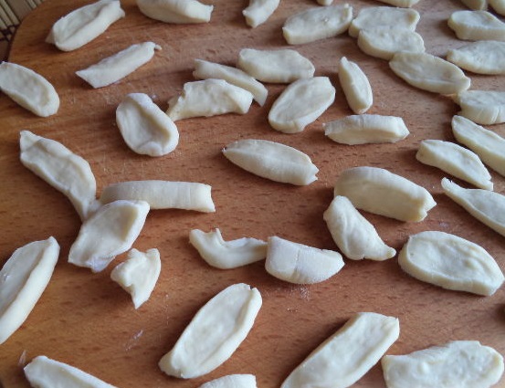 Cut dumplings with a sharp knife (about 0.5 cm thick).