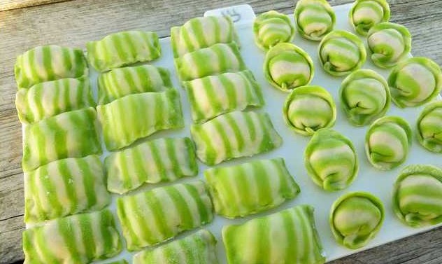 We continue to be creative! A beautiful and delicious recipe! Ravioli and striped dumplings, have you seen that? The usual cucumber juice made a miracle – colored the dough! We have already surprised our guests, try it too!