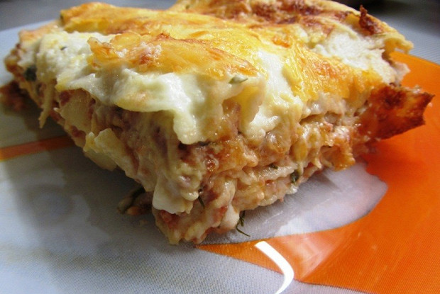 As I already wrote, the number of lasagna sheets depends on the form in which it will be cooked. I have a square shape, and the lasagna sheets are usually rectangular – I put 2 sheets side by side, one sheet 3-5 mm goes over the other so that the layer does not fall through and scatter when the filling is on top.