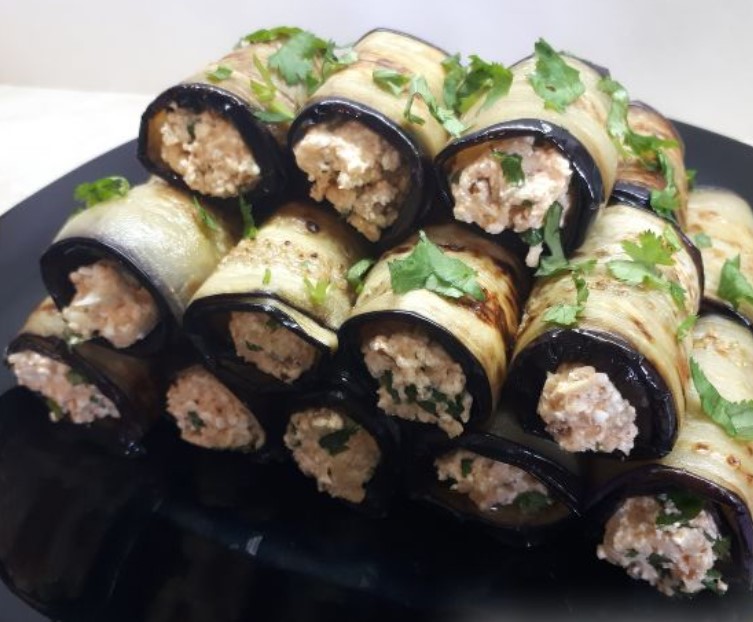 Eggplant Rolls with Cottage Cheese, Cheese and Nuts