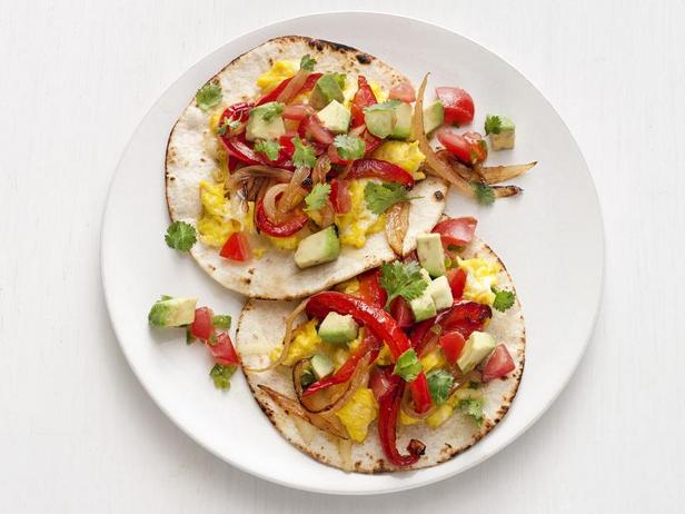 Prepare a delicious and interesting breakfast of scrambled eggs along with vegetables in the form of Mexican fajitas on warm wheat cakes. Scrambled eggs are fried in a pan and mixed with many different types of grated cheese (for example, Monterey Jack and Pepper Jack), after which they become very viscous and mouth-watering. She will be accompanied by a Mexican salad, whipped up from avocado, tomato, jalapeno, and cilantro, seasoned with fresh lime juice, and fried bell peppers with onions in butter.