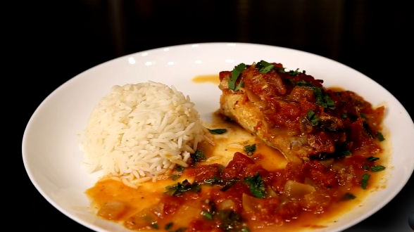 - The fish baked with tomatoes is ready. Serve with boiled rice.