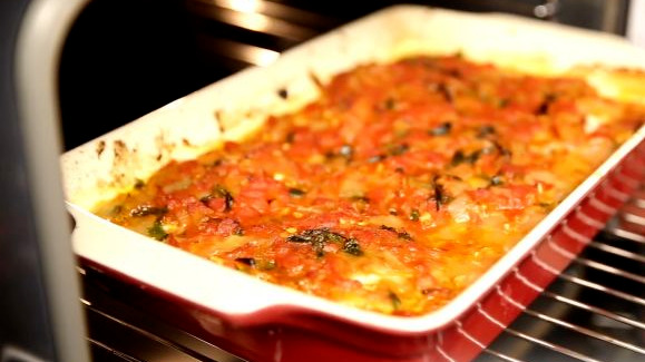 A delicious recipe for fish baked with tomatoes, Mediterranean style.