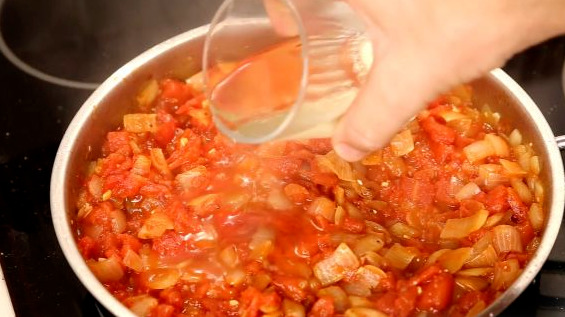- Add wine and stir. Simmer over medium heat for about 10 minutes.