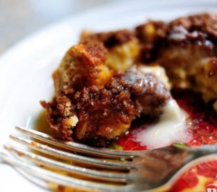 Before cooking, preheat the oven to 175 degrees. Sprinkle the bread and milk mixture evenly with the flour crumbs. If using fruits or berries, place them on top of the crumbs