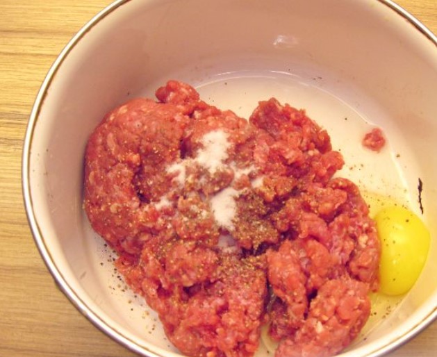 Add salt, pepper, 1 egg to the minced meat. Mix.