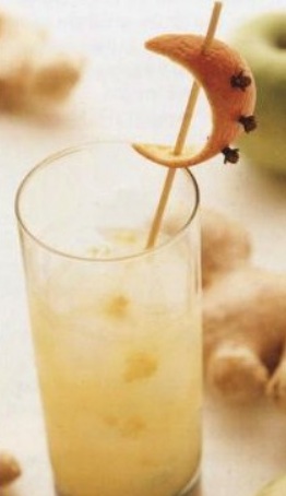 An old English drink served chilled with ice. Of course, you can make a cocktail with the juice of fresh apples and oranges, but baked fruits with cloves make the drink taste much better.
