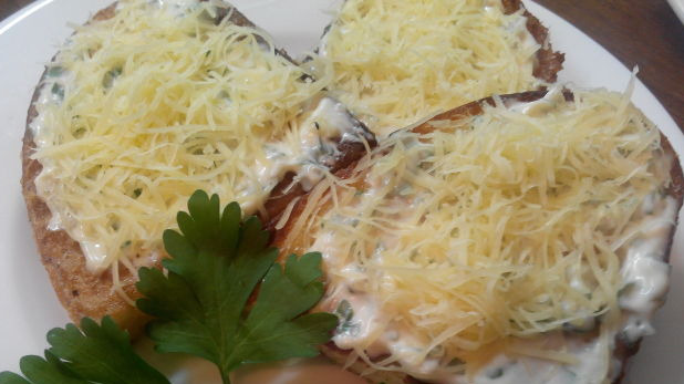 Lubricate the croutons with the prepared mixture in a thin layer (1 teaspoon each).