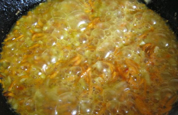 - Rub the carrots on a coarse grater, cut the potatoes into cubes.