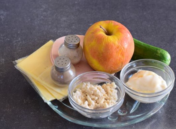 Before preparing the ham and cheese appetizer with horseradish sauce, prepare all the foods on the list. A small piece of horseradish root is well washed and cleaned. If you want to slightly reduce the pungency, fill with cold water and refrigerate for about 6. You can grind horseradish on a grater, in a blender or through a meat grinder. Do not forget to protect the mucous membranes of the nose and eyes from the pungent odor.