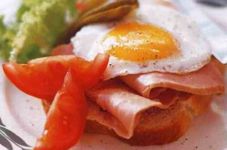 Grease the bread with butter on one side and place on a serving dish; put the slices of ham on the bread.