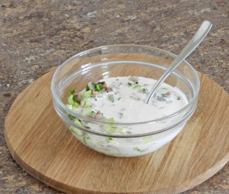 - Arrange the herring appetizer in portioned glasses and refrigerate until the sour cream jelly hardens.A delicious herring appetizer is ready.