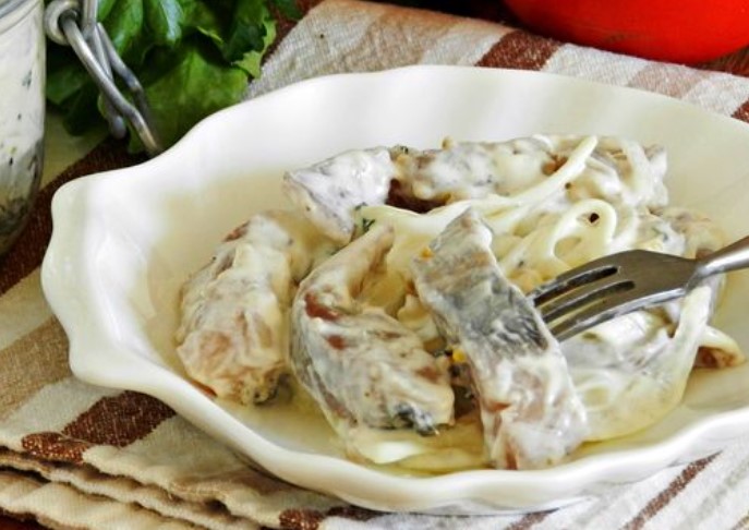 - Mix the herring with the marinade. Cover the jar with a lid and refrigerate for 30-40 minutes.