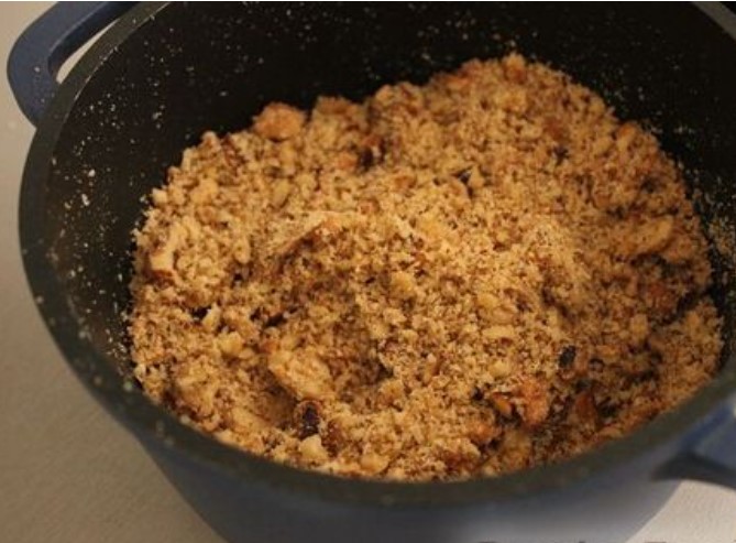 Add proteins and sugar to nuts and mix well. This is our filling.