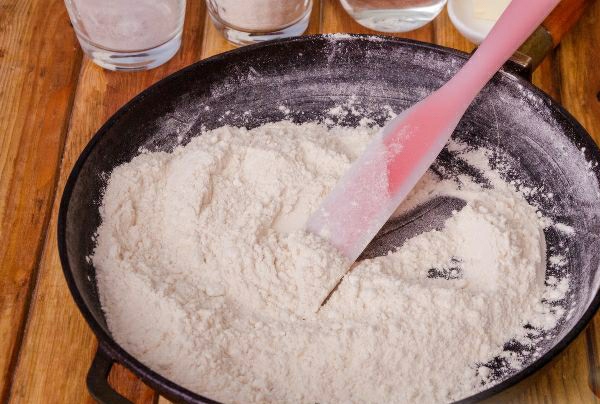 Fry the seeds in a dry frying pan until light golden brown. Do not overdo them, otherwise they will taste bitter. Pour the seeds into the bowl of the food processor and grind into small crumbs. Pour flour into the freed pan and, stirring, fry it until light golden.
