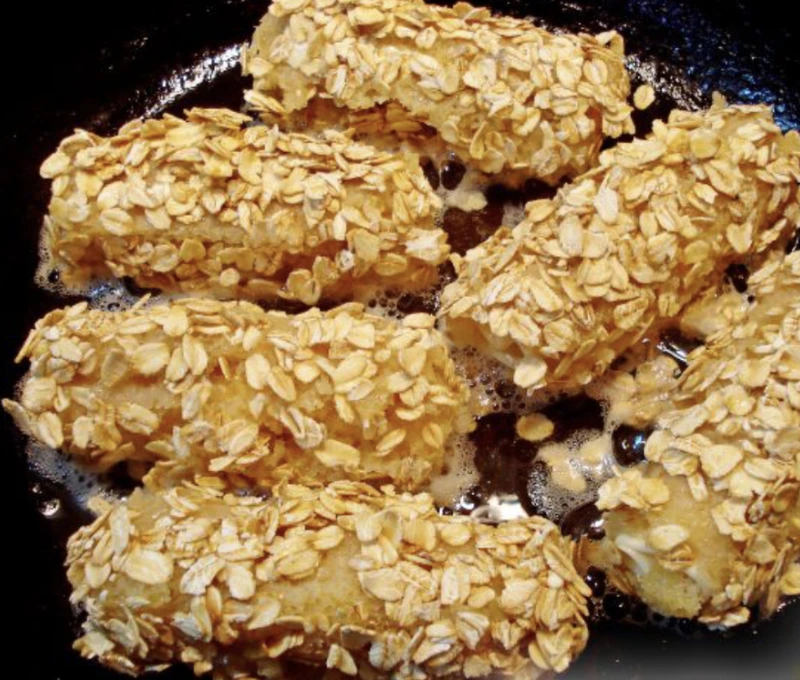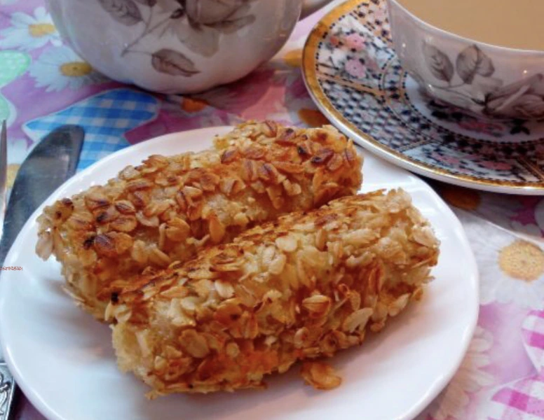 - Fry the cheese roll sandwiches, breaded with oatmeal, on all sides, so that the flakes acquire a golden hue.