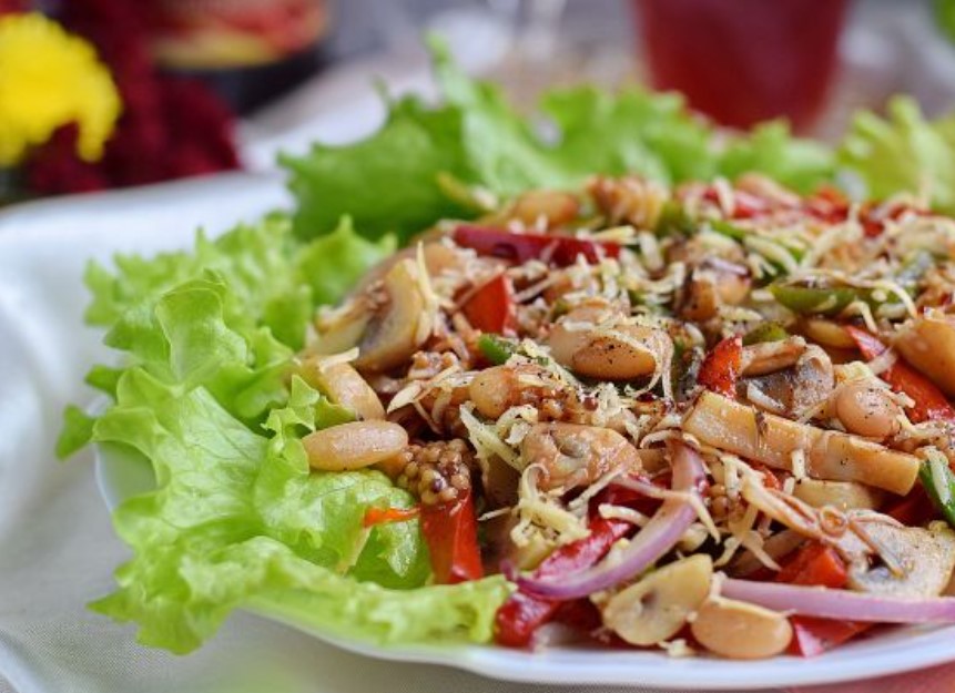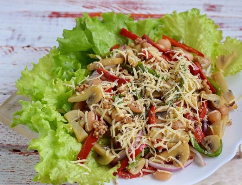 The hot mushroom salad is ready.