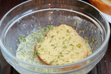 Dip a slice of the loaf in the mixture. If the mixture is too thick and does not saturate the bread well, add 1-2 tablespoons of water.