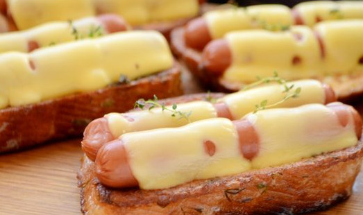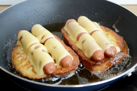 Hot Sandwiches with Sausages and Cheese (in a Pan)