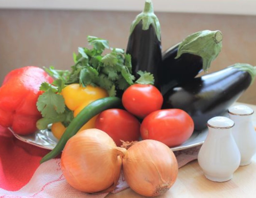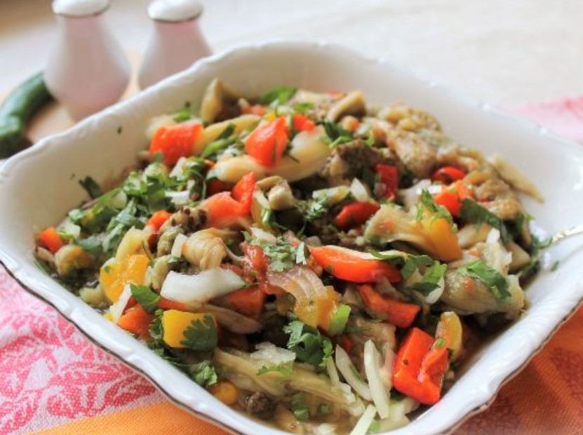 Mix all the ingredients in a bowl, add salt and hot red pepper. Armenian khorovats made of vegetables is ready!